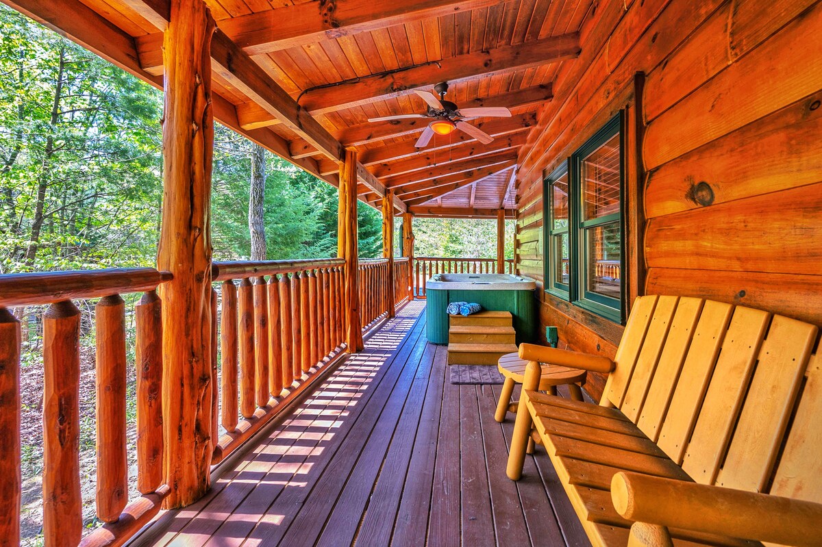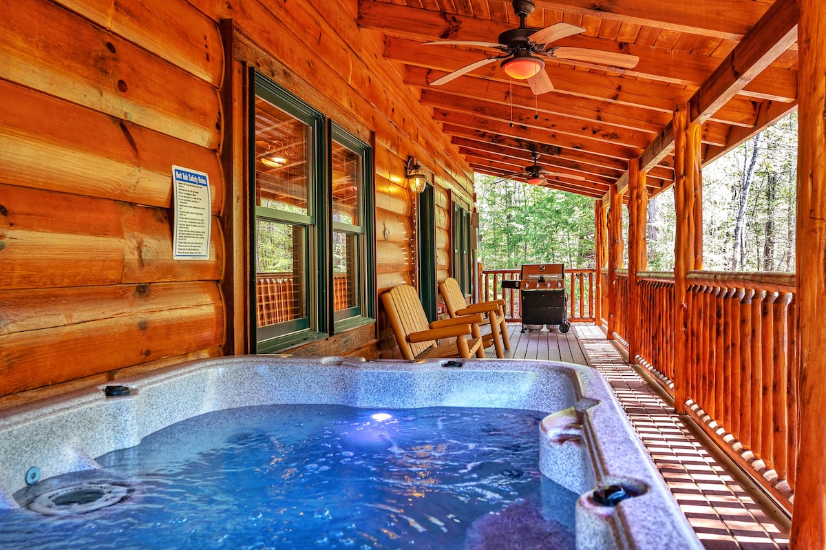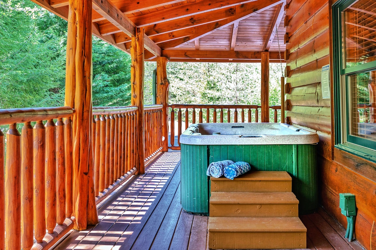 While you’re out on the porch, why not take advantage of the hot tub for a relaxing soak after a long day of exploring all the exciting attractions in the area? Our pristine hot tub sits under the shelter of the porch roof, so you can even enjoy it in the rain. There’s nothing cozier than listening to the sound of raindrops from the comfort of the hot tub!