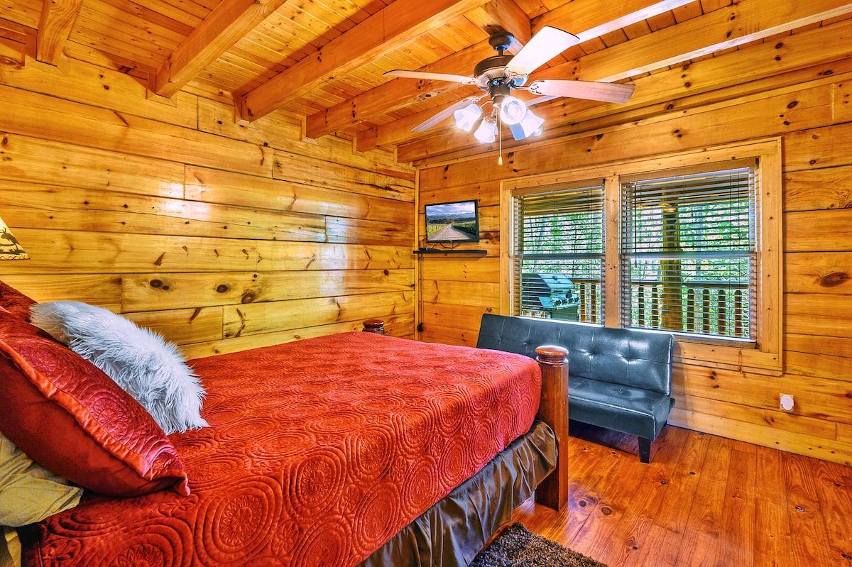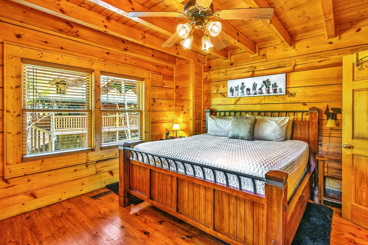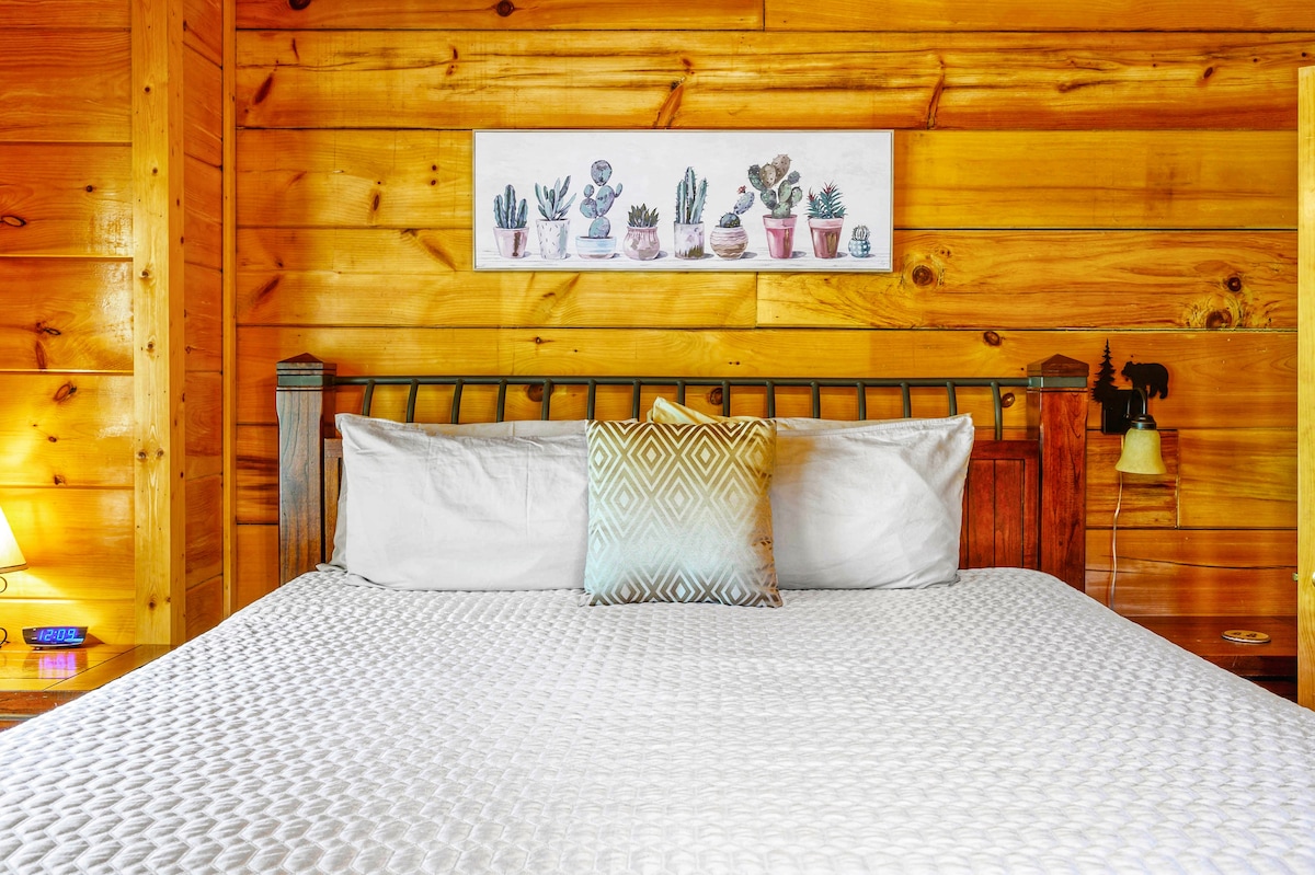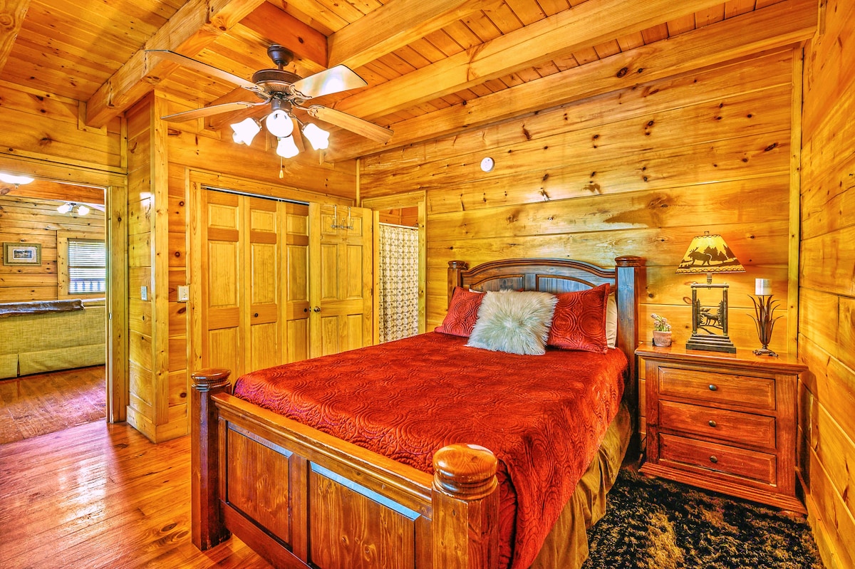 Comfortable and spacious bedrooms await you at this high-quality wood cabin. The sleeping configuration is super versatile to fit the needs of large families or groups of friends.