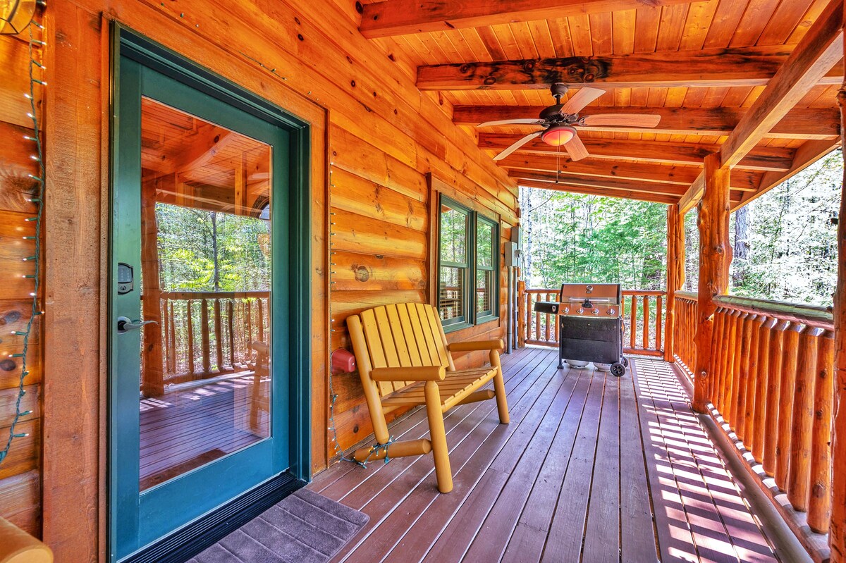 From the lounge, you can step outside onto the wraparound outdoor deck. This wonderful extension of your living space is the perfect way to take in the natural landscape surrounding the cabin. Simply hit the pause button and enjoy the beautiful mountain views.