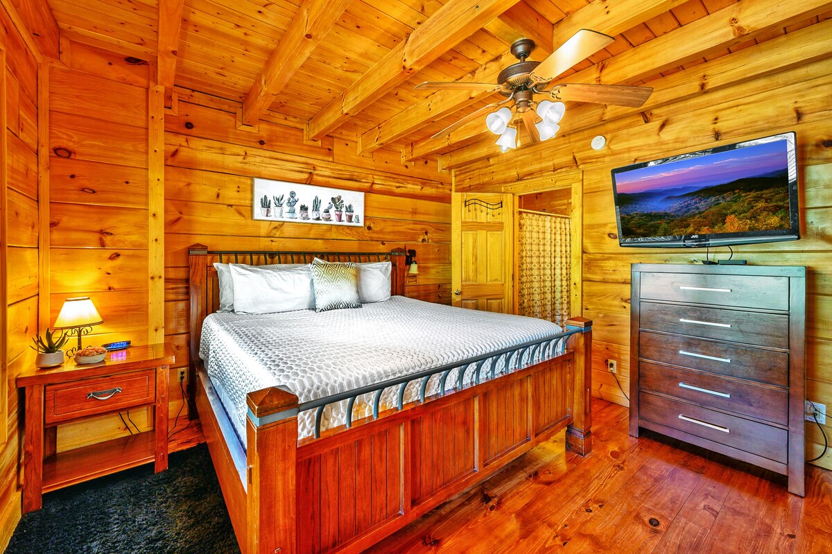 The master bedroom is situated on the main level and provides you with an inviting king-sized bed to comfortably recharge your batteries each night. A large flat-screen TV ensures that you can relax in the privacy of your own space when you want to.