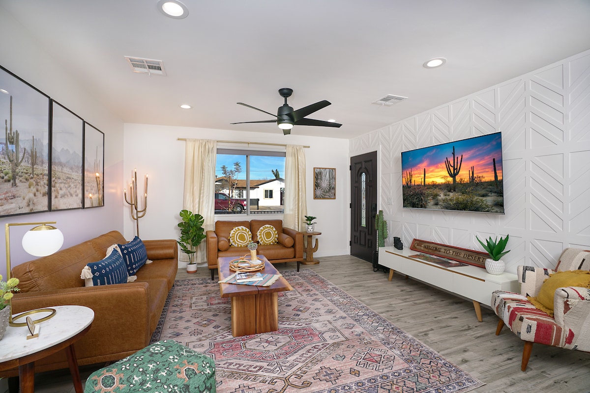 GilbertTreat yourself to a relaxing getaway at this charming remodeled home in downtown Gilbert. The Prickly Pear House is the perfect place for families seeking the comforts of home with a touch of luxury. Enjoy the plunge pool, lounging on the patio with the refreshing misting system, and the unbeatable location near great restaurants and shops!